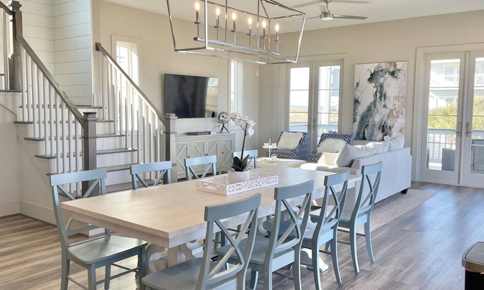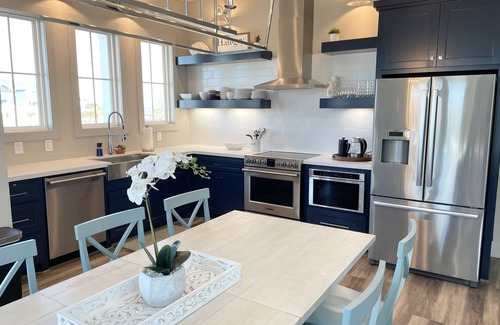 A beautiful, custom beach house built in January 2021 and located in The Pointe West development. Furnished with brand new, top of the line appliances and contemporary furniture. Furnishings, linens and decor are all brand new so there's no need to worry about dirt, grime or germs. The kids have their own GAME ROOM with their own 65” Samsung smart TV so that you and the adults can relax and enjoy the comfortable living room without any distractions.