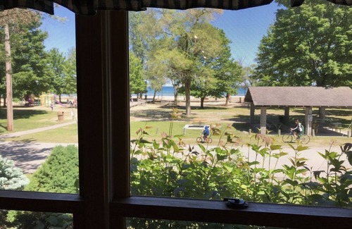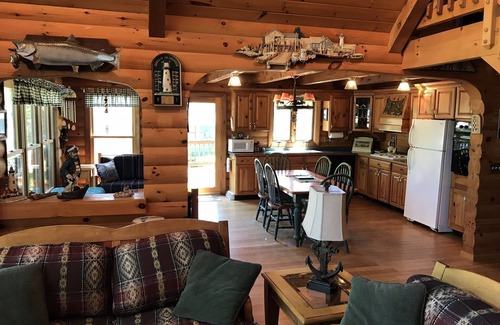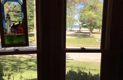 Location, Location, Location.....This truly one of a kind vacation rental is located at the center of the Oscoda Beachfront Experience on Lake Huron. No need to walk or ride a bike to the step out the front door. This log home is 100% custom made and decorated in a nautical/ outdoor theme to enjoy the full Up North experience. Sunrises that words cannot describe, and memories to last a lifetime. Walking distance to all of downtown.