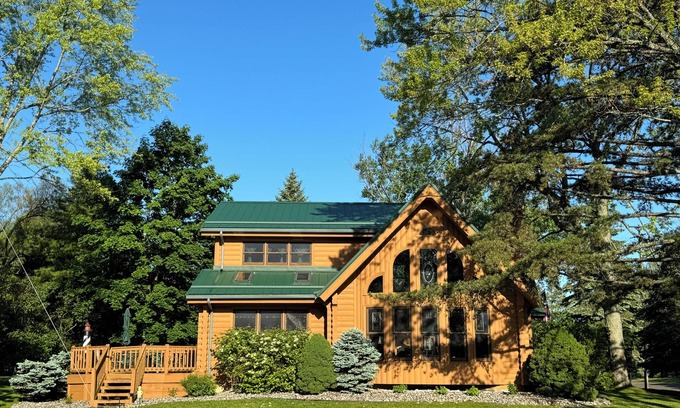 Beautiful Beachfront Custom Log Cabin on Lake Huron | House in Oscoda