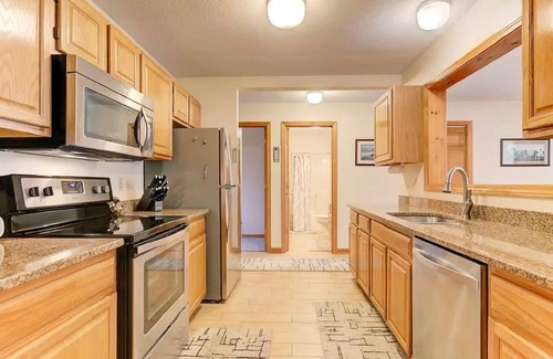 This second-floor unit is bright, sunny, clean, and family-friendly. Enjoy the mountain décor throughout the three bedrooms, two full baths, and large, open-concept kitchen/dining/living area, including granite countertops and stainless-steel appliances. In warm weather, enjoy your meals or morning coffee on the large deck overlooking the woods and lawn. Venture down to lounge at the pool, play on the tennis court and basketball court, or explore the trails of Whitaker Woods right from the property!