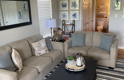 8 Minutes to Gulf Shores Sportsplex, 11 minutes to OWA, and only 15 Minutes to Orange Beach Sportsplex!!! Escape to where the only wildlife of a beach vacation is the mullet jumping, dolphins feeding, and ducks quacking by! This two bedroom/one bath cabin sleeps 6, has a fully equipped kitchen, washer/dryer combo, and all the serenity you could ask for! Sitting directly on the Bon Secour River, it is minutes from the outlet malls as well as from Gulf Shores’ beaches. The gated community of 18 free-standing cabin units has a swimming pool and boat launch, and each cabin has its own private pier to tie up your boat after cruising down the river to Bon Secour Bay, Mobile Bay, the Intracoastal, or out into the Gulf of Mexico. Or, enjoy the kayak and canoe and explore the upper river. Spend evenings grilling out and lounging in the hammock and swing, watching the herons, pelicans, jumping mullet, and occasional pods of dolphin. Or drive just minutes to enjoy Gulf Shores and Orange Beaches’ attractions. Foley offers shopping @ The Tanger Outlets along with many restaurants to choose from.