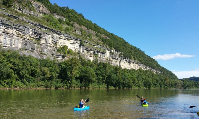 Whether you are coming to Mountain View for the folk music and Ozark folk culture, or you are just looking for a peaceful, relaxing getaway with a variety of recreation options nearby, this could be the place for you. There is a stairway behind the cabin providing easy access to the river for fishing or other water related activities. There is a good place on the rocky beach area behind the cabin to put a Kayak into the water if you would like to make the beautiful, approximately 2 or 3 hour float from the cabin to Guion public boat access.