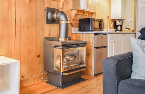 This beautiful cabin also features a nice partial view of Mount Adams as well as the surrounding grounds. Cabin is lofted with a comfortable queen-sized bed upstairs, a pull-down Murphy bed downstairs, and partial kitchen with a place setting for 4 guests. The large bathroom with shower/jacuzzi tub is the perfect way to relax after a long day of hiking followed by curling up with a book to enjoy the cozy propane fire stove.