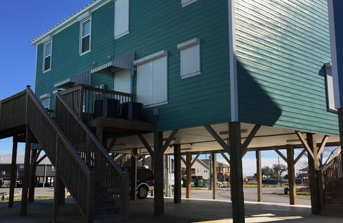 This modern, comfortable townhome was recently purchased and has all new furnishings, towels, linens, and kitchen set-up. With sleeping accommodations for up to eight people, large families or groups of friends can enjoy the great fishing on Lake Calcasieu. The master bedroom has a queen size bed and the secondary bedrooms each have a twin bunk over a standard double bed. There is a boat slip with a lift for use by the guests, and a fish cleaning station. Parking for up to four vehicles directly under the house. Common area for grilling and socializing. The unit has an ice maker with a 100 pound capacity per day and a gas grill for grilling those fish you caught today! Additionally, there is free wifi, and check out/in times may be negotiated depending on the day of check out/in.