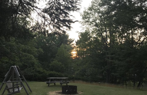 A picnic table, gas grill, fire pit and swing. Inside enjoy our quaint sun room & Family room where you can enjoy a beautiful sunsets overlooking the water.