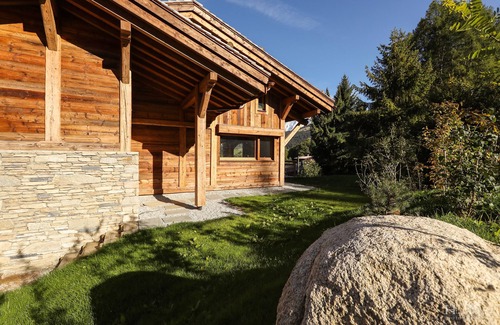 The chalet, 5 stars-rated, offers a complete immersion in a mountain landscape unique in the world: the "Mont Blanc" but also the "Aiguille du Midi", the "Aiguille verte", the "Grandes Jorassses", and the "Fiz" massif. The warm old-wood interior ambiance is combined with a contemporary layout. The interior architecture on three levels completed by half-levels (wine cellar, jacuzzi area and children's dormitory) served by the staircase gives the chalet a unique charm with varied atmospheres. The huge terrace at the level of the living area (dining room, open kitchen, warm fire place) overlooks the landscape as in a hot air balloon with a 4000 m visible vertical drop.