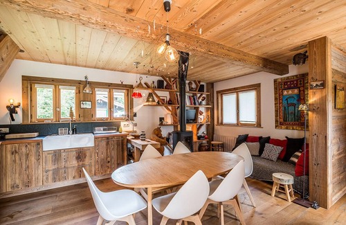 Very nice independent chalet located near the center of Chamonix, facing the Mont Blanc. Completely renovated recently, converted into half-levels, it mixes perfectly "mountain" spirit, design decoration and artistic touches.