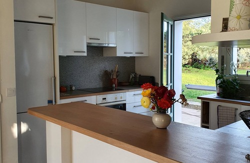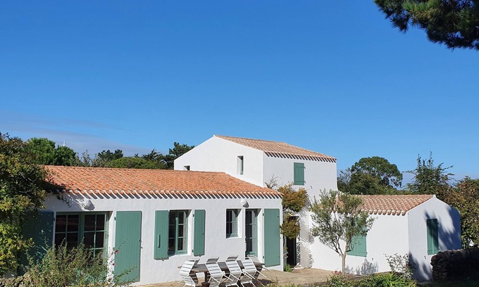 Beautiful 4 bedroom house, comfortable and well equipped. Ideal for holidays with friends or family. Perfect for two families with children. The house is located just below Saint-Sauveur, both close to shops but quiet. Large garden with stone walls, quiet and sunny. Near the bike path that joins the main port of the island, the house is ideally located in the heart of the island. We can change the beach every day, depending on mood and wind ...