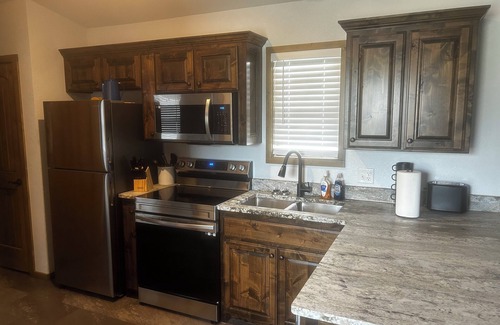 Stay comfortably in New Boston at this newly constructed 1-bedroom White House Cabin #3. Nestled in nature, this cool retreat features a cozy living room with a queen size sofa bed, perfect for relaxing after a day of exploring. The private bedroom boasts a full size bed, ensuring a good night's sleep for guests. Catch your favorite NFL & college games with 2 TV’s and fast wifi connection. Other features include nearby designated parking, large refreshing shower, washer, dryer, plenty of storage space for long term stays, large porch with Adirondack chairs, well equipped kitchen with all new appliances, new furniture throughout. Be sure to check out the monthly rate! With AC and heating, you'll stay comfortable year-round. We think our place will help you experience everything New Boston has to offer!