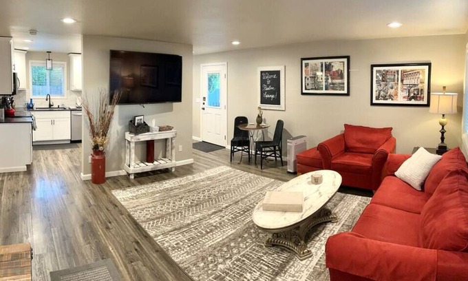 Your perfect getaway awaits! Clean, homey, well stocked throughout - recently remodeled with thoughtful touches to make you feel at home. Fully fenced back yard! Please inquire if you have a pet. Screening and additional pet cleaning fee required. Close to shopping, Apple Tree & Westwood golf courses. Enjoy morning coffee and breakfast from Starbucks three blocks away. Wrap up the day at Public House where you’ll find dozens of local beer and ciders on tap along with a great menu! Plush beds and premium bedding appoint the three bedrooms. One king, one queen, and three singles in a bunk room with trundle. The home has been beautifully furnished with Flexsteel furniture and the perfect touches to make you feel at home. Our well-stocked kitchen invites you to cook or enjoy your favorite take-out. Stainless steel appliances, quartz counters, plenty of storage and two eating areas finish off the space. Read a book, play a game, put together a puzzle or sit back and relax with the 65” Smart TV In living room, 50” Smart TVs in King and Queen bedrooms, or the 40” TV in bunk room. BBQ, plenty of coffee and creamer, and game and puzzles provided! Large lot includes numerous off street and under carport paved parking and easy access to enter the home via the front door or kitchen side door once guest has checked in. Check in and out with no face to face interaction. However, we are always available for questions and here to make your stay an enjoyable one! Close to Public House tap house, shopping, restaurants, Starbucks, golf courses and easy driving distance to schools and hospital. Quiet, safe, lovely West Valley neighborhood. Plenty of off street and covered parking. Close to bus stop, Uber service. Located 5 minutes from Glenwood Square shopping and restaurants, 10 min to the Memorial, and 25 min to PNWU. We’ve tried to think of every detail to make your stay a pleasant one! Please note: One step up to front door. Yards are there for your use but please use cautions as uneven areas and naturally occurring dips are present. Guests may not bring additional non-registered guests/visitors to the home at any time, for any length of time. Only registered guests may enter the premises.