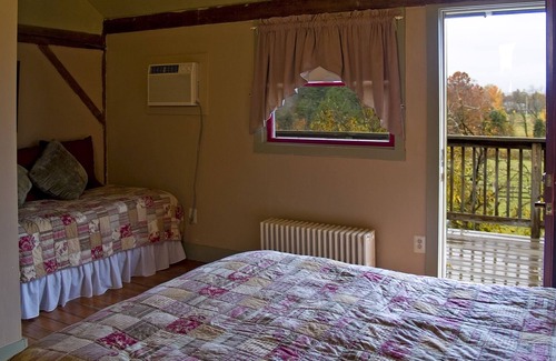 A wonderful converted barn on a 10 acre horse farm , gourmet kitchen, game room, large living room w/wood burning stove, library, large dining room, with 4 bedrooms. All rooms have private baths and entrances to decks or patios and AC that will sleep Eight (8) PEOPLE. Beautiful gardens with views of the horses in the pastures. Our barn is handicapped accessible with a handicapped accessible room. This barn is more like a beautiful lodge than a home......