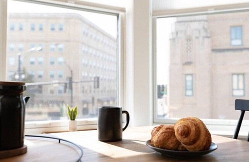 Beautiful corner view loft in downtown Champaign is located in Champaign. Beautiful corner view loft in downtown Champaign provides accommodation, featuring Parking, Kitchen, Fireplace/Heating, among other amenities. This Apartment features Parking, Kitchen, Fireplace/Heating, to make your stay a comfortable one.