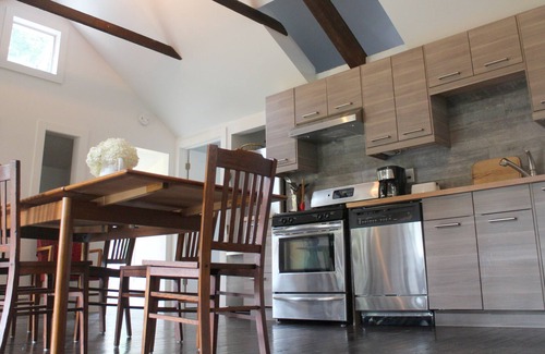 Our beautifully restored cottage is just under 2.5 hours from NYC. We have two bedrooms that comfortably accommodate four. Relax in a deep soaking tub, or enjoy some wine and recline on the large deck.