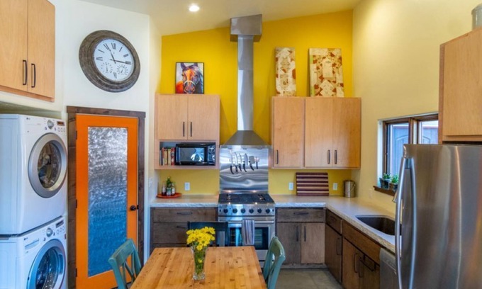Located on one acre 8 miles south of town, very quiet with gorgeous views of the Mts and access to trails. Cozy cottage 1 bedroom, 1 bath with soaker tub/shower for relaxing at the end of the day. Also includes a fold out couch for extra guests. Chefs kitchen for cooking or 10 minute drive into town for a variety of dinning experiences. Washer and dryer included. There is a television but no cable tv. A chromecast and Roku are provided. Feel free to say hello to the animals. We have a dog, Yellar and 2 cats, Rusty and Lightning, also a pot bellied pig named Dudley. They are all very friendly