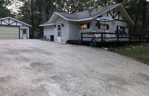 Year Round Fun in this Beautiful Up North Cottage getaway that sits on a huge Corner lot with 3 nicely wooded lots for added privacy or perhaps added guest that bring their tents. Large driveway, so bring your ATV or Water toys to park them close to home or in our garage. There is a wrap around deck perfect for morning coffee, bird watching or just enjoying the fresh air. There are also 2 fire pits located on the property one small and one large fire pit for more of your guest to gather and enjoy. We have 6 adult bikes and 1 child bike for your use to enjoy the small town of Lewiston. This 2 bedroom, (1-Room with Queen Bed and the 2nd with a King bed) 1 bath cottage has an additional 3rd room located off the queen with 2 twin beds. The cottage is equipped with all the necessities of home, to include Washer & Dryer, Microwave, Dishwasher, Stocked Kitchen, Linens, Grill, TV in each room, Wifi, Cable, Horse Shoes, Corn Hole, bottle bash, Kan jam, and lots of board games and cards. Enjoy all that Northern Michigan has to offer with plenty of Hiking, Fishing and boating in the area. The Beach (East Twin Lake) is less than 4 mins from the home located off of Kneeland Street. There is also a small drop in at the end of our street used for jet skis, kayaks & canoes. Garland Gulf Resort is less than 7 minutes away, TreeTops Ski and Extreme snow Tubbing is 20 minutes away. Twin Lakes Marina is less than 3 min from the home where you can enjoy your day by renting a pontoon boat, paddle board or kayaks for the entire day at a great price. Lots of ATV, Snow mobile, and biking trails for you to explore. There is also a small town in Lewiston, here you will find a grocery store, banks, gas stations, bait, restaurants, Ice cream shops, and a couple antique shops.
