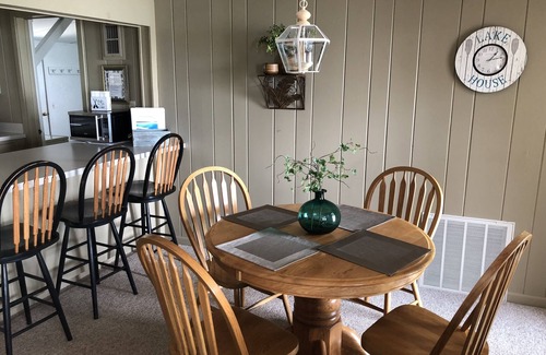 This fully furnished newly remodeled cottage with large windows for your unobstructed greater than 180 degree panoramic water views. For even better views we recently installed all glass railings on the deck. Other recent upgrades include new deck furniture and full house air conditioning. You are only 50 feet from the water (10 steps down). Every room has a view of the water. The kitchen is open to the living room which allows exceptional views as well.