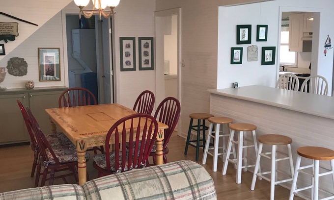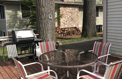 Lovely rental available in Assembly Park, Delavan, WI. Three bedrooms with one full bath located on a quiet street. The first-floor bedroom has a double bed and stackable washer and dryer. There are also two large bedrooms on the second floor. One bedroom has a double and a single bed. The second bedroom has a double bed. There is a full bathroom with a shower on the first floor. The fully equipped kitchen includes a refrigerator, stove, dishwasher and microwave. There is a wonderful breakfast bar with seating for 8, large kitchen table, sofa, love seat, and recliner all on the main floor. The cottage has cable TV and a DVD player. To keep you cool, there is one large window air conditioner on the main floor and one air conditioner in each of the two upstairs bedrooms. Windows wrap around the cottage with a view of the lake. A great deck out back includes a table, chairs, and grill for cooking all the fish you caught during the day. Situated on a lot and a half this property has ample parking for at least 4 cars. Many great restaurants, stores, and activities nearby. Great location for the perfect summer vacation!