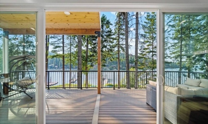 This 4500sf Amazing waterfront home is the perfect getaway for a couple families or friends to enjoy lake Couer d'Alene in the summer or snow wonderland in the winter. The main floor features open concept chefs kitchen, dining, living with beautiful views from the house. Upstairs there's 2ensuite bedrooms with king beds and kids Pass through bedrooms area with 2full over full bunks and a pullout queen couch. Bring your boat in the summer or skis/snowmobile in the winter. Down stairs you'll find 2 more bedrooms with king beds a large living room and deck to hot tub or lake. 15min to DT Cda with shopping/restaurants golf, hiking ect.