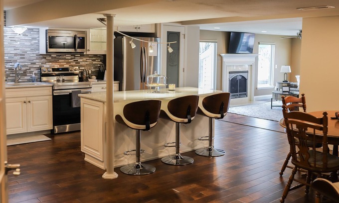 Beautiful custom, lower-level Villa! Multiple upgrades! has 2 Bedrooms , 2 Bathrooms, and max occupancy of 8 people. The minimum rental for this property is 1 nights, but this can change depending on the season you plan on staying. Previous guests have given good rated it, and VRBO labeled it a top-rated Villa because of the excellent services rendered by the owner or manager of this Villa, and has consistently provided great experiences for their guests. Most families or guests that use it recommend it to their friends and some of them are repeat guests. Villa has a friendly neighborhood, and the O'Fallon has interesting places to visit. If you want to learn more about the Villa in O'Fallon, such as places to visit and things to do nearby, you can check below to learn more.