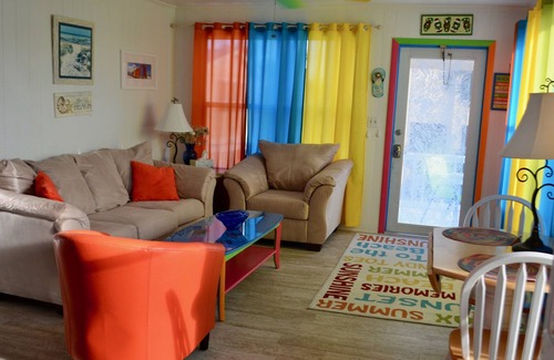 Cute little cottage just 30 ft from the beach. Even though there is one small cottage between you and the gulf, the views are wonderful! Sit on the porch, and have your breakfast. The pier, restaurants, shops and beach activities are within walking distance from this little cottage. Time Square often has entertainment during the day and early evening.