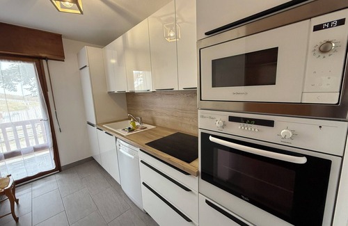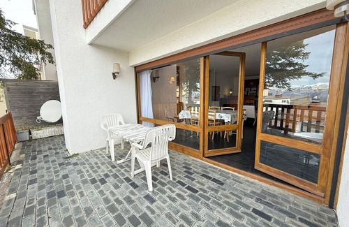 The apartment has a lovely terrace, ideal for dining in summer or on sunny days in winter. The house faces the mountain on the heights of the resort, just a few minutes' walk from the center, or by the shuttle bus that runs past regularly (in season only).