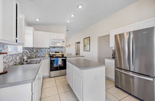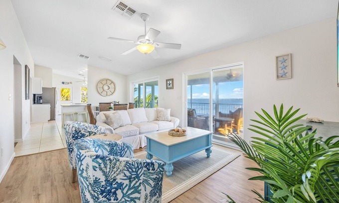 Escape to your gorgeous 3-bedroom, 2-bath direct riverfront beach house retreat. If you are a wildlife enthusiast, this is the perfect destination for you and your family. With two complimentary kayaks, sit back and paddle to discover all the possibilities from dolphins, manatees, turtles, birds and many many fish. Sit back and enjoy the million-dollar view from multiple spots of this home while spectating many boats of all kinds, jet skis etc. cross your home.