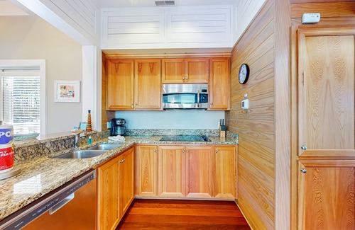 The centrally air-conditioned interior is full of beautiful finishes and features, from the large windows to the richly hued woods. Enjoy a living room with a TV, a lovely kitchen with stainless steel appliances, a stovetop only, a microwave, and space to dine at both the breakfast bar and bistro table. In the evenings, there's a serene bedroom with its own TV, direct access to the deck, and a spa-like bathroom with a soaking tub and shower.