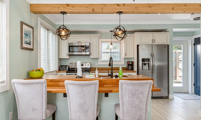 All 4 units in this Boutique complex have been completely renovated within the last 2 years. Beautiful custom kitchens with granite or teak wood countertops, bathrooms with walk-in showers and unique tile finishes, comfortable furnishings and tasteful art round out the space. Multiple windows and quiet mini split air conditioning and heating systems. Beautiful space to call your home for your vacation. Each until also has a private courtyard and the duplex building also has a very large shared front porch. Laundry on site for your convenience. NEED MORE SPACE? RENT THE WHOLE PROPERTY! LINKS BELOW.