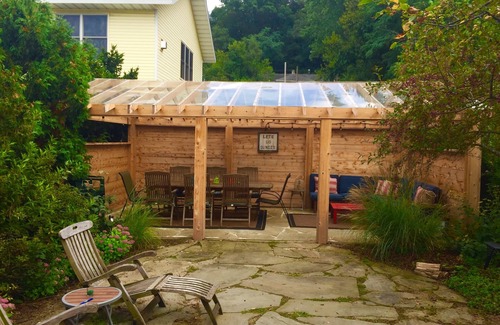 Relax in our lovely landscaped backyard which includes a large covered pavilion, perfect for al fresco dining (even in the rain!). Or stretch out on the sectional sofa while drinking your morning coffee or sipping an evening cocktail.