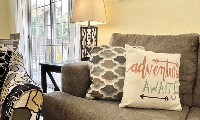 Beautiful, bright, and clean top floor corner condo with FREE AMENITIES. 2 bedrooms with 2 full baths. Also includes a queen sofa bed and pack and play for the extra kiddos! We hope that our condo will feel like your home away from home while you enjoy all Branson has to offer! HIGH SPEED INTERNET/ WIFI along with Roku TV in each room. Living room TV also has cable TV and DVD player. There are numerous free movie rentals in the activities center located at the resort entrance. The kitchen features updated counter tops and all appliances needed for your culinary needs.