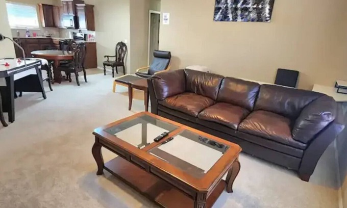 Enjoy a great getaway away from home! NICE LOCATION! 5-min walk to Top Golf OKC, 0.8 miles from Chisholm Creek shopping/eateries with easy access to Kilpatrick Turnpike & major highways. Has 4 bedrooms, with a 65-inch Smart TV, high-speed internet (1000mbps) for streaming. The large living room features 10' ceilings, Master bedroom comes with a TV and a beautiful king bed with LED lights around. New carpet, Full kitchen, washer/dryer for convenience. All rooms offer ample size and closet space.