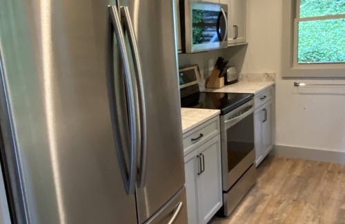 This 3 level house has everything you will need to make you feel at home. On the Main Level you and your guests will enter the front door to a fully equipped Kitchen, Family Room with a 60 inch Smart TV, French doors that lead out to the multi-level porch with a brand new gas grill, a Dining Room Area, and the Master Bedroom with an attached bathroom with a shower and tub combination.