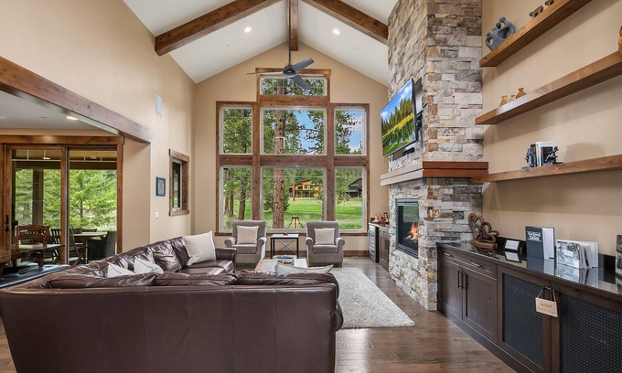 Just outside the great room is a comfortable outdoor living space with big views of the golf course. The private hot tub is a great place to relax after a long day of golf, or playing with the kids at one of Suncadia's many parks.