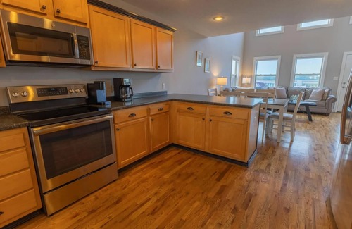 The upper level of the house includes three bedrooms and one full bathroom. Two bedrooms boast king-size beds and one bedroom with a queen-bed. All bedrooms have smart televisions. As an addition, one king bedroom on upper level has private deck access!