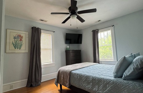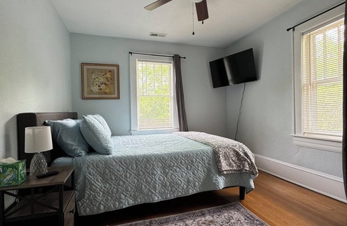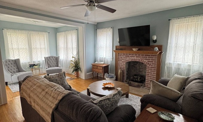Welcome to our charming 5-bedroom, 2-bathroom 100-year-old home, ideal for families or business travelers. Enjoy cozy seating and a large TV in the living area. All rooms boast plush memory foam beds and smart TVs. The fully equipped kitchen makes meal prep a breeze. A designated workspace is provided for remote work or study sessions. Conveniently located near downtown and outdoor attractions. Whether for business or leisure, our home provides comfort and convenience for your Roanoke getaway.