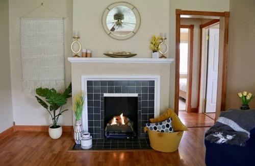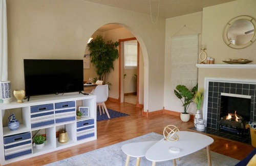 Located in a safe, quiet neighborhood less than 3 miles from all area hospitals, this home is an economical option for a long-term hotel stay. This tastefully decorated 1950 bungalow features 2 bedrooms, 1 bathroom, an attached garage, an alarm system, and exterior security cameras.