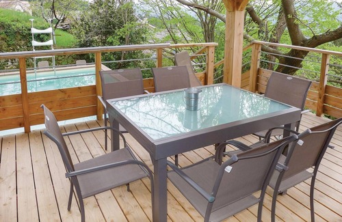 In the village of Bordezac, this wooden vacation property built in 2014 benefits from an unobstructed view of the Cévennes. The house stands on a terraced plot with pine and chestnut trees. The comforts of the accommodation include a swimming pool, loungers under the shady chestnut trees, a luxury shower with hammam function and high-quality sleeping mattresses. If you like to bathe in the roaring waters of a river, you'll find some gorgeous swimming spots in the Cèze Valley. Visit Anduze (50 km) and its bamboo garden, Saint-Jean-du-Gard (63 km) and its steam locomotive, the magical underground cave Aven d'Orgnac, the gorges of the Ardèche and the unique Pont d'Arc (42 km). Only 8 km away Bessèges awaits with restaurants and a supermarket. The house is accessible via steps. Parking possible on the property.