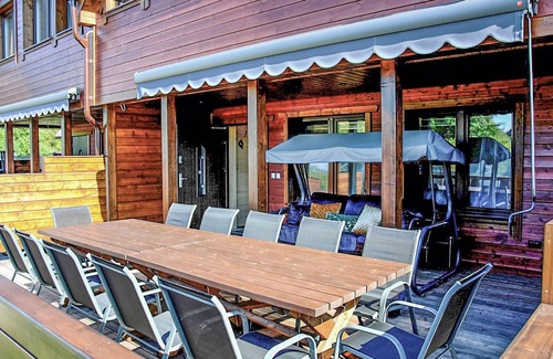 Enjoy the sun-protected terrace of this spacious wooden house, perfect for family moments together outdoors!