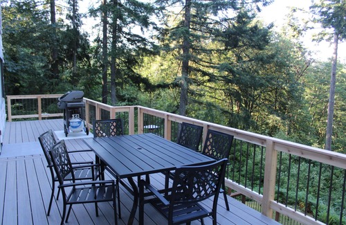 Enjoy the peace and quiet Vashon Island has to offer in this oversized house with all the amenities. Read a book or drink your coffee on one of three decks elevated amongst the trees. An outdoor oasis with hot tub and fire pit area to enjoy. Paddle boards available for use and KVI beach is only 10 minutes away. Five minutes to downtown Vashon where you can shop and dine. Come and enjoy everything the island has to offer in this cozy home!