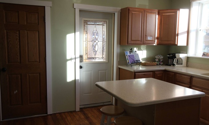 We have a beautiful, recently renovated 1916 home. Downstairs you will find a full bath, bedroom with king bed, fully remodeled kitchen, living room and foyer. Upstairs there is a full shared hall bath with two bedrooms that have queen size beds. Also a master suite with king size bed and attached full bath.