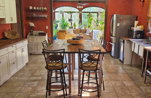 This Cobden country chateau boasts 3 inviting bedrooms with 3 king beds, 1 queen bed, and 2 twin beds, a cooks kitchen, sun room, and so much more makes it perfect for relaxing after a day of exploring all the charms of Southern Illinois, guests will feel right at home. Nestled in the Shawnee just miles from Giant City State Park and 5 wineries. Whether you're floating in the pool, relaxing in the sun room or getting lost in the sky on the stargazer bed this property is the perfect retreat for a memorable getaway. It's easy to see why you'll be able to unwind at our not so far away getaway.