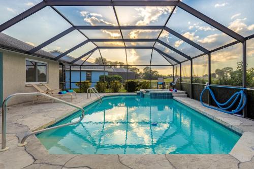 24 miles from Fishermen's Village in Rotonda West, Beautiful home overlooking a freshwater pond and golf course provides accommodations with access to spa facilities. This vacation home features air-conditioned accommodations with a patio. Venice Theatre is 20 miles away and CoolToday Park is 15 miles from the vacation home. With free Wifi, this 3-bedroom vacation home offers a cable TV, a washing machine, and a fully equipped kitchen with a dishwasher and oven. Guests can take in the views of the pool from the terrace, which also has outdoor furniture. For added privacy, the accommodation features a private entrance. Grande Tours Kayak Center is 6 miles from the vacation home, while Warm Mineral Springs is 15 miles from the property. The nearest airport is Punta Gorda Airport, 27 miles from Beautiful home overlooking a freshwater pond and golf course.