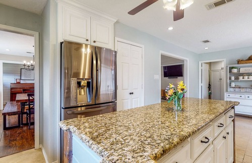 Find tranquility, warmth, and peace of mind when you visit the quaint town of Tomball and this charming home that's perfect for a getaway. With a private pool, hot tub, billiards, and plenty of room for everyone, an unforgettable vacation is in your grasp. Walk to the adorable little town district where you can sample hometown foods, shop at boutiques, and discover small-town charms. For those who love watersports and adventure, Lake Conroe is down the road, or hike the beautiful trails in the woods. After a day full of adventures, come home and relax poolside with an inviting backyard complete for an outdoor barbecue in the outdoor kitchen, perfect for witnessing breathtaking sunsets.