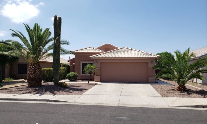 Welcome to our Charming Getaway in Surprise Arizona! This 3BR/2BA home has a lot to offer, from the tastefully furnished and decorated interior to the backyard outdoor oasis. This home includes all of the necessary items you'll need to feel comfortable and have a peaceful, relaxing vacation. A fully equipped kitchen available for convenient preparation of your favorite home-cooked meals. The 8 foot hedge around entire backyard provides an intimate retreat, including a sparkling pool that can be heated in the cooler months. A redwood pergola with seating and a fire pit table. Dine al fresco, with the gas BBQ and patio dining set. Enjoy the tiki themed bar with plenty of bamboo, colored lights and fun decor. A great place to soak up the sun and unwind during the day and entertain guests during the evening. We are located in the heart of the Cactus League Stadiums and are a 6 minute drive to the Kansas City Royals and Texas Rangers facility. Perfect spot for the family when in town for tournaments. A golfers heaven, with 9 golf courses in Surprise and another 57 within 20 miles of the city. For automobile aficionados, Barrett Jackson, Mecum, and Sterling auto auctions are nearby. There are car shows and cruise ins almost every weekend. There are so many things to do, Casinos, Hiking, Tennis, Pickleball, etc. Nearby we have The White Tank Mountain Regional Park, Wildlife World Zoo, Aquarium & Safari Park and Lake Pleasant Regional Park, State Farm Stadium, Top Golf, Desert Diamond Casino and much more. These are all great places to spend the day! We have taken great care in every detail to create a perfect vacation escape. We invite you to experience one of our favorite places. Please do not hesitate to reach out if there's anything that would help make your stay more enjoyable.