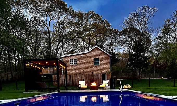 Fully renovated brand new cozy 2-bedroom 2 bath home on a beautiful 3/4 acre, no traffic! Walking distance to bay beach and playground and park in The Springs hamlet of East Hampton. Located on a very quiet dead-end street. Brand new pool, just built in the fall of 2021. Very private with deck overlooking the pool, huge fenced-in yard. Pool patio with lounge area and gas firepit.
