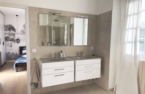 Beautiful Mansard-style house in the heart of Maisons Laffitte park, not overlooked. 4 bedrooms, 2 with double beds and 2 for children. 3 bathrooms with toilets + guest toilets. Large, bright living room, tastefully furnished and decorated. Well-tended garden with large terrace and BBQ area. With the forest and stables nearby, you'll enjoy peace and quiet yet be close to Paris (20 min by RER A). The center of Maisons Laffitte offers a wide range of shops and restaurants. It's an excellent option for recharging your batteries in a green setting after days of sightseeing in Paris!