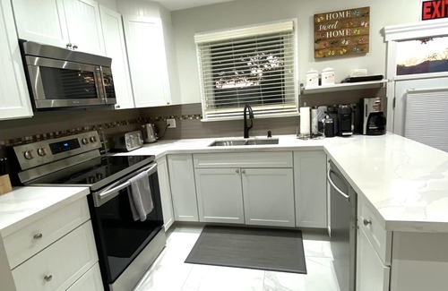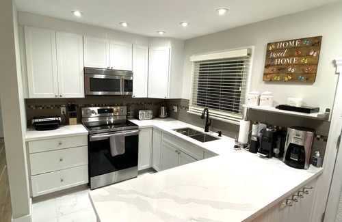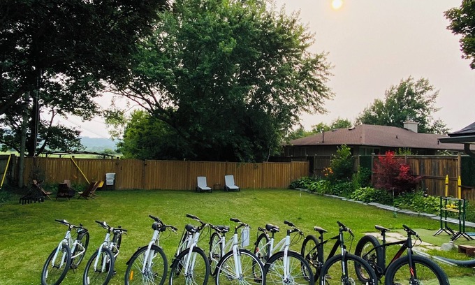This fantastic 4-bedroom bungalow is ideal for large groups and can comfortably accommodate up to 8 people. Enjoy two large sitting areas, one with a smart TV 55 inch with Netflix, the other 65 inch, and free wi-fi access throughout the house. Guests can have access to our full modern kitchen that includes all the amenities (fridge, microwave, oven, toaster, dishwasher, electric grill, coffee maker, nespresso, electric tee kettle, BBQ with propane included, free parking, free laundry. Coffee, tea and sugar will be provided. Guests will enjoy the scenic view in front of the house, sitting on the red Muskoka chairs and our oversized backyard, which is fully fenced to make a nice BBQ.