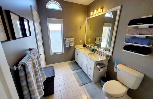 Enjoy your morning with coffee and a sunrise at the end of the dock or on the porch. Enjoy some yard games provided such as volleyball, corn hole, and foosball, while listening to your vacation playlist on our whole house home audio system. Speakers inside/outside, controlled by Bluetooth on your phone, will get the energy going for a great day on the lake!