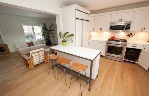 The house is decorated in a relax beach house style, and is equipped with Sonos speakers. There is a record player in the living room that comes with an extensive and quality record collection. The TV room has Sonos speakers, flat screen tv, apple tv, and a playstation 4.