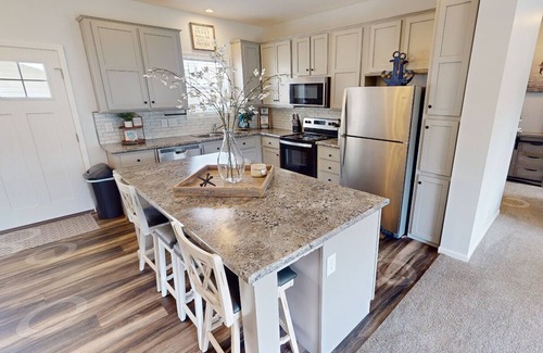 This spacious retreat features an open-concept family room, kitchen, and dining area—perfect for gathering with loved ones. With three private bedrooms and a detached garage outfitted for family fun, it’s the ideal getaway for comfort, connection, and a little adventure.